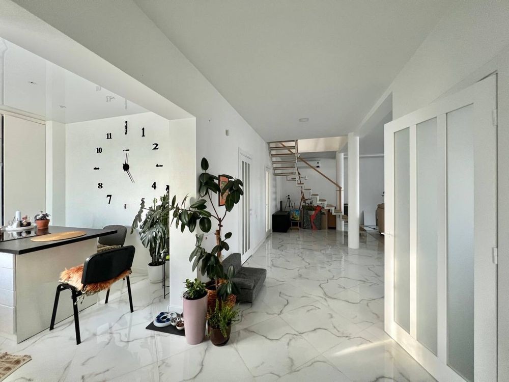 Продам будинок в місті Суми на Роменській. Ділянка 6с рівна. На ділянці крім будинку немає нічого. Гарне місце розташування ( вулиця широка, гарні дружні сусіди). Загальна площа 100 квм. Перший поверх повністю з ремонтом, з меблями та технікою. Другий поверх під чистове оздоблення ( туди вивели всі комунікації), тимчасово використовується як кімната для гри в теніс. Будинок цегляний і утеплений пінопластом. Криша- металочерепиця. В кухні та ванній кімнаті є тепла підлога. На першому поверсі знаходиться кухня-15 квм, дві спальні ( одна з виходом на терасу), великий зал. Ціна власників 97000