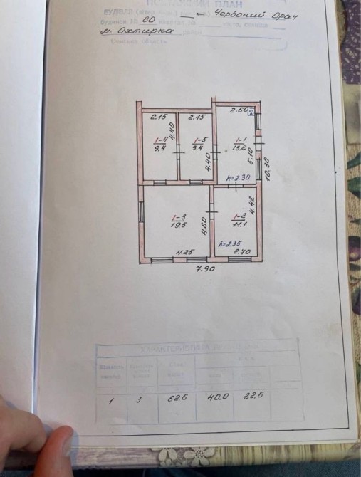 Будинок складається з 3 кімнат, житлова площа — 40 м², висота стель — 2,30 м