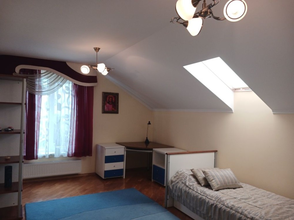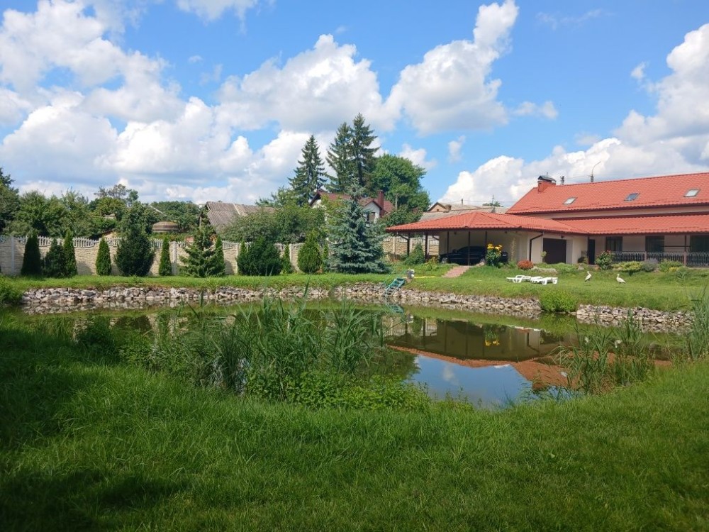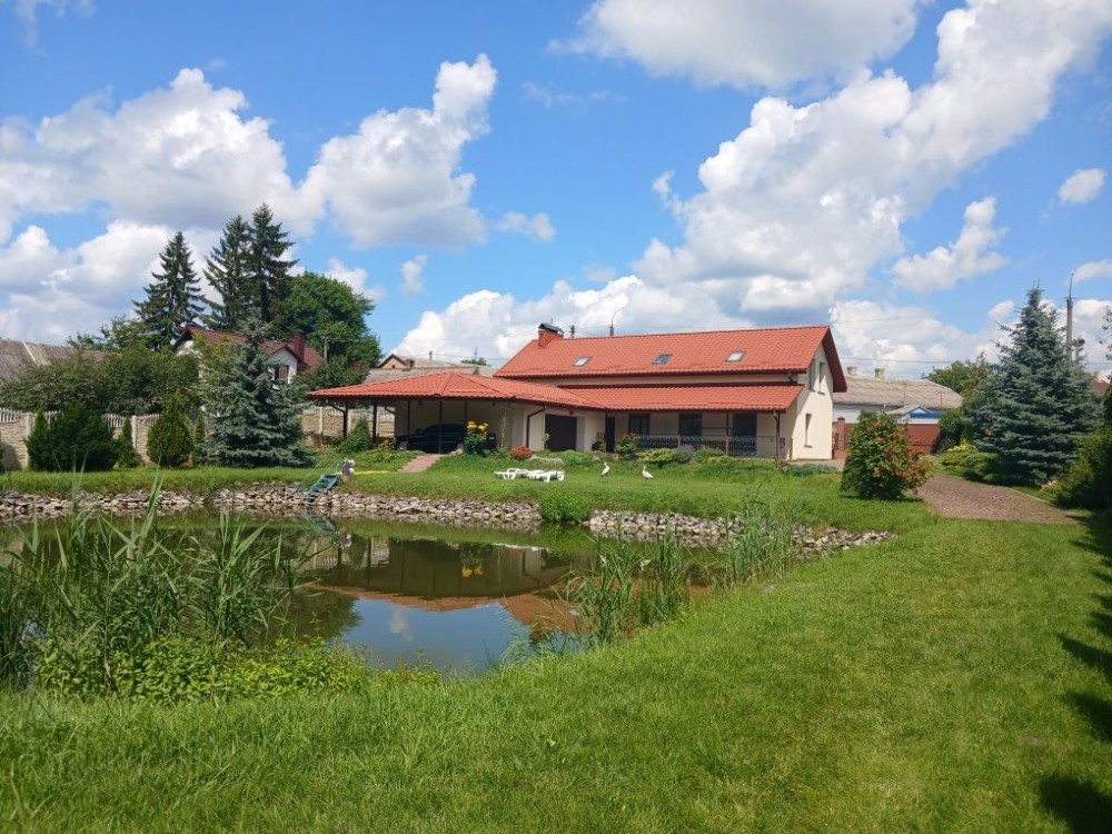 Продам 1,5 - поверховий будинок в м. Луцьк по вул. Теремнівській. Заг.площа- 305 кв. м. Цегляний, утеплений пінопластом 10 см. Перекриття дерев'яне. Накритий металочерепицею. Криша утеплена мінватою 20 см. Комунікації в будинку. Автономне опалення з двоконтурним котлом. Тепла підлога, де плитка. Світло. Центральна вода, каналізація (вигрібні ями). Євроремонт. Зем. ділянка- 0,4075 га. На території ділянки є два стави з рибою, декоративні і плодові дерева і кущі, ліс з грибами. Гараж на два автомобілі. Ціна- 350000 у.о. АГЕНТСТВО НЕРУХОМОСТІ ,,ЩАСЛИВИЙ МЕТР,,