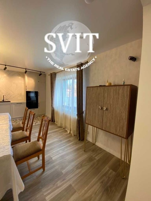 велика світла кухня-їдальня – вбудовані меблі залишаються;