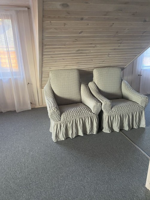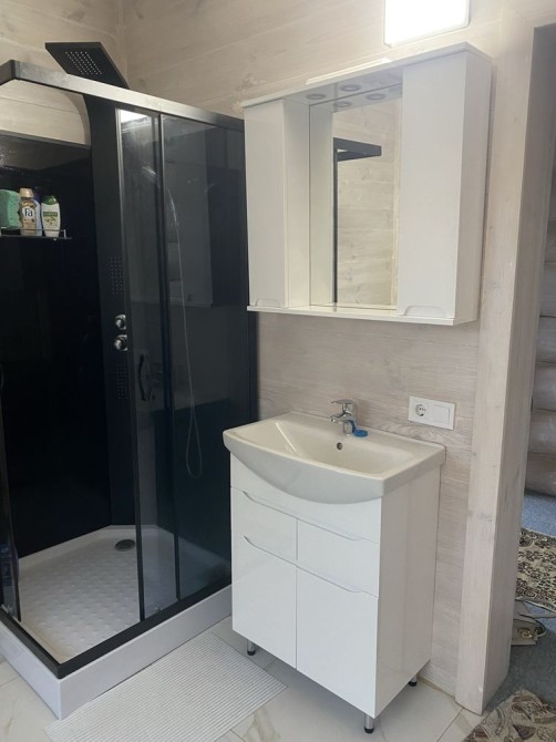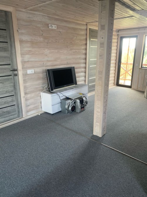 Двохповерхова баня 150 м2, на першому поверсі кімнати для бані, бассейну,комната відпочинку,, на другому поверсі кімната для більярда з вітражними вікнами і виходом на дві тераси с виглядом на річку. Від бані до річки 50 м. Підключено водовідведення