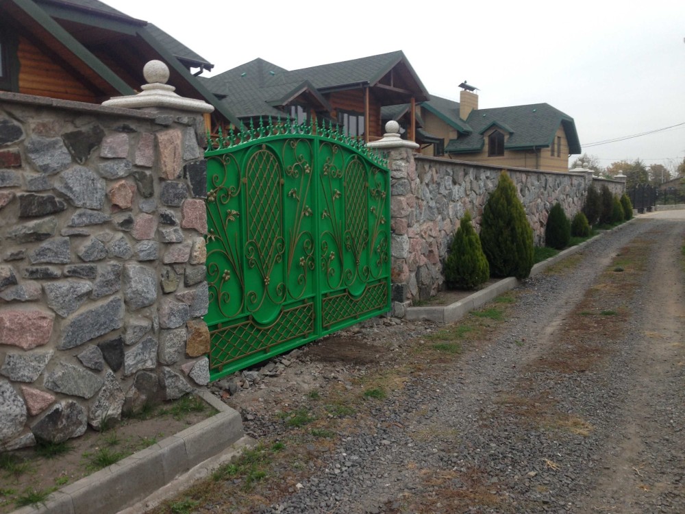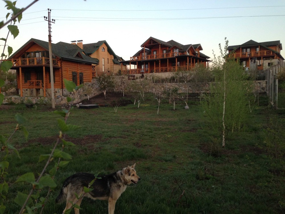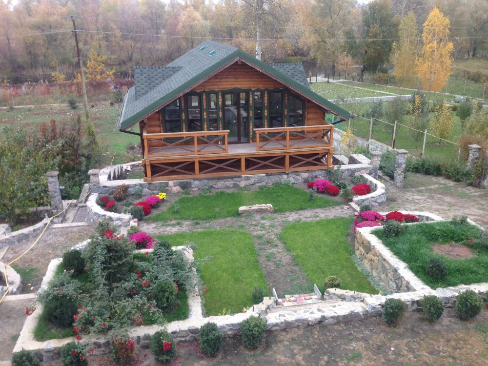 Ділянка 0.20 га огороджена красивим парканом: від дороги із бутового каменю висотою 2 м, по всьому периметру двору з металопрофілю під дерево зі стовпцями під камінь. Розташована ділянка на схилі дуже вдало, має два рівні: на першому – двір иі два будинки, на другому – молодий сад, місце для альтанки, ландшафтна зона і баня с виходом на луг до річки.