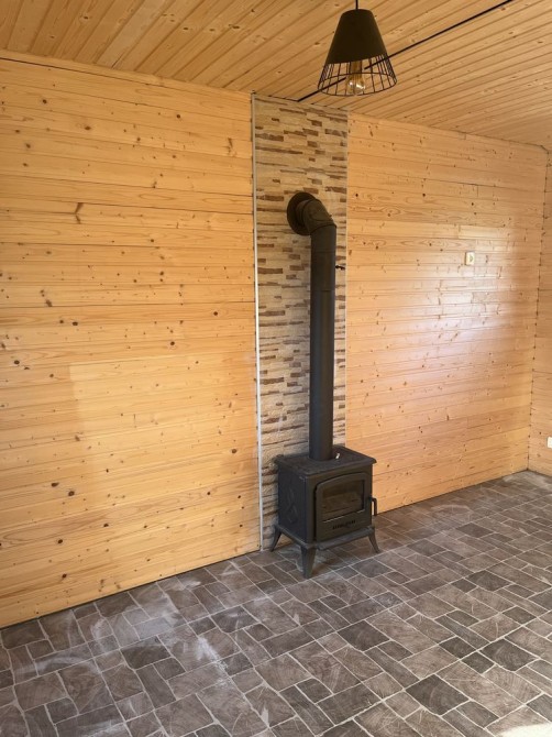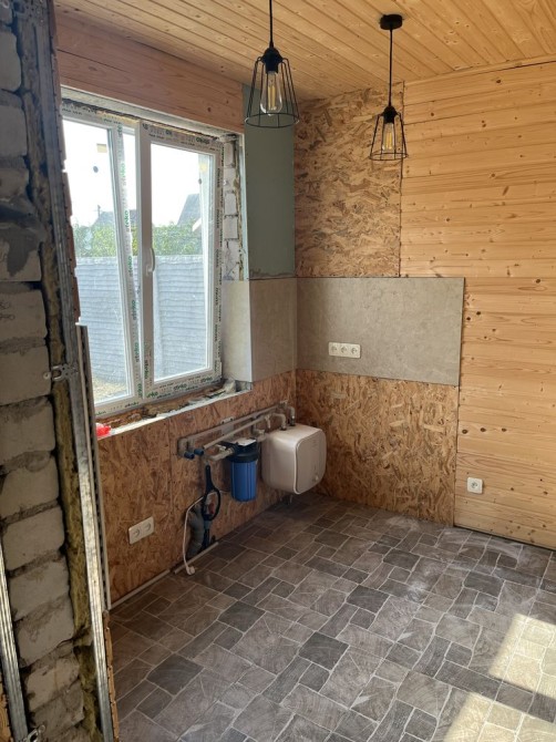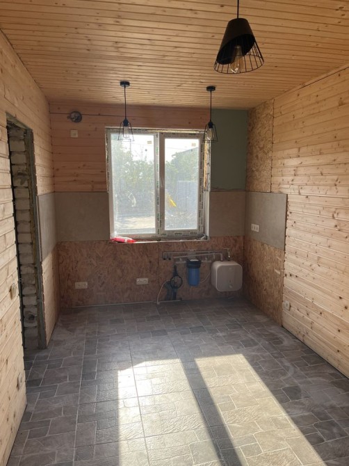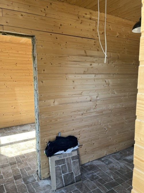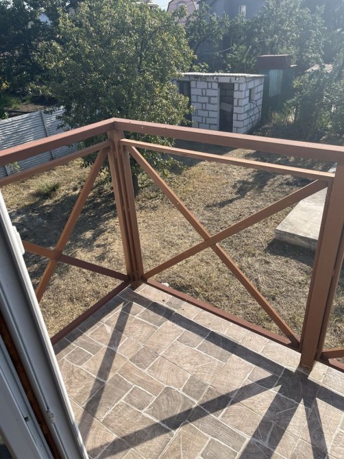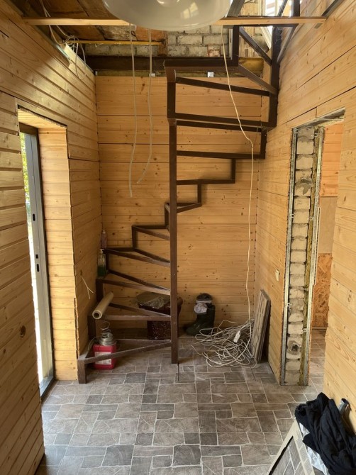 В гостьовому будинку перший поверх майже дороблений - встановлені МПО вікна, двері, зроблена стяжка, нова електрика, встановлений бойлер і фільтра під кухню, покладена плитка, встановлена піч, обшитий вагонкою. Зварені сходи на другий поверх, зварений балкон і покладена плитка. Все робилося для себе, з якісних матеріалів і якісно. Б