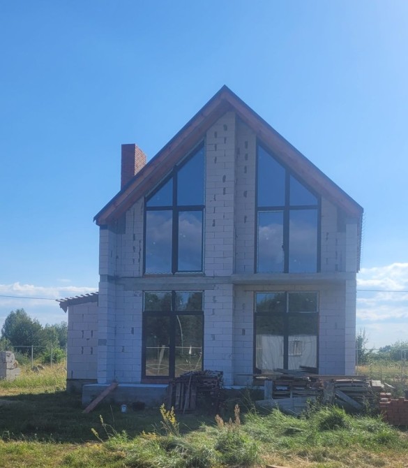 Монолітний высокий фундамент. Зовнішні стіни - газоблок, фальцева покрівля ( відрізняється високою герметичність, довговічність і естетичні тю), утеплення - мінвата. Вікна WDS ламіновані, що надає більшої естетично ті, а головне підвищює стійкість і довговічність.