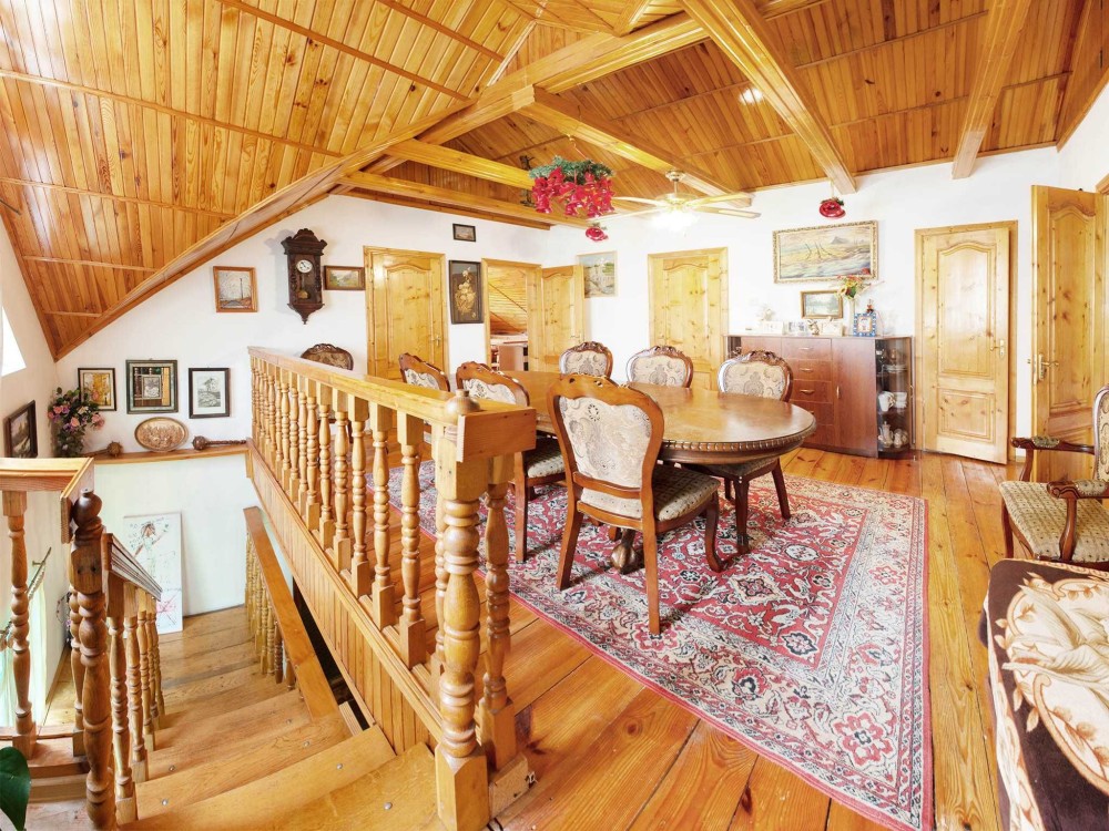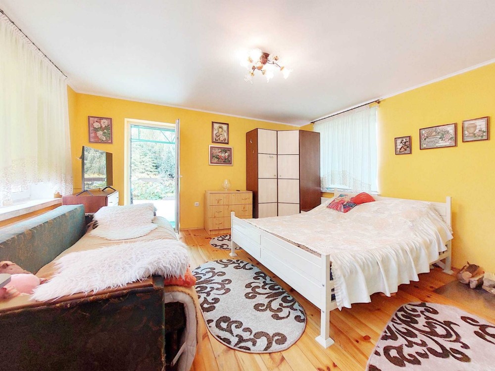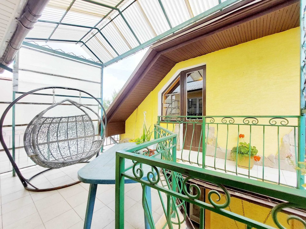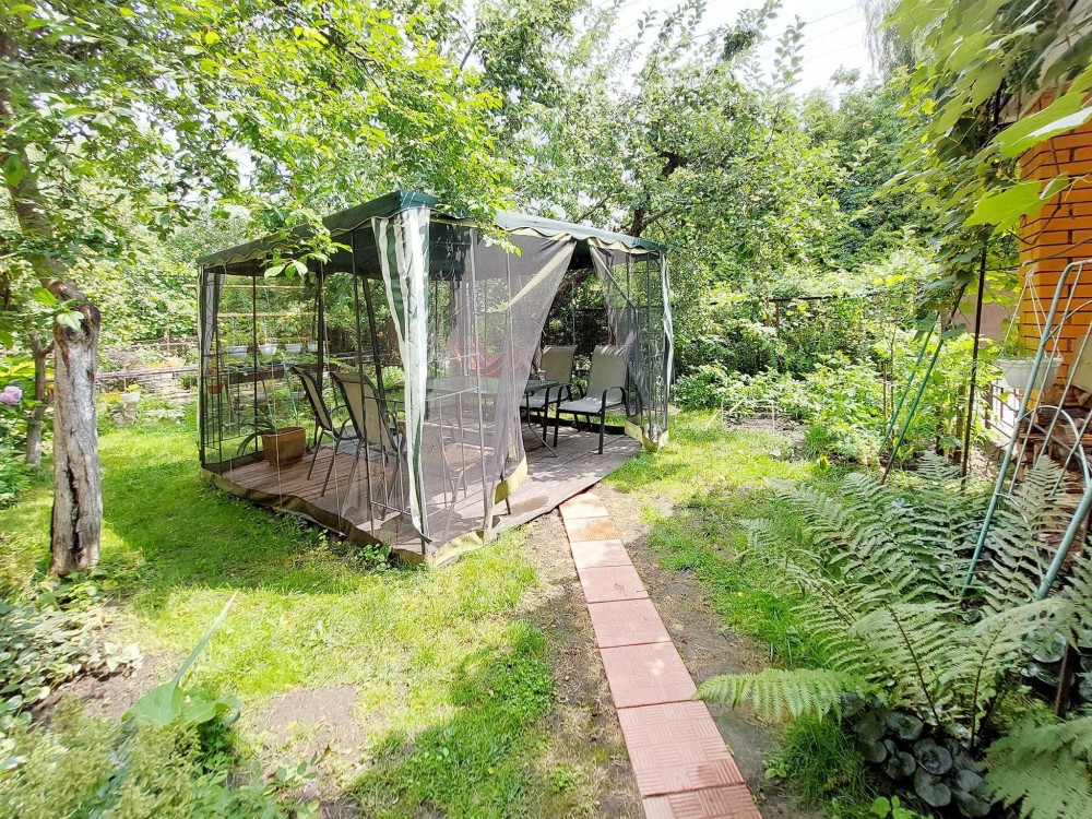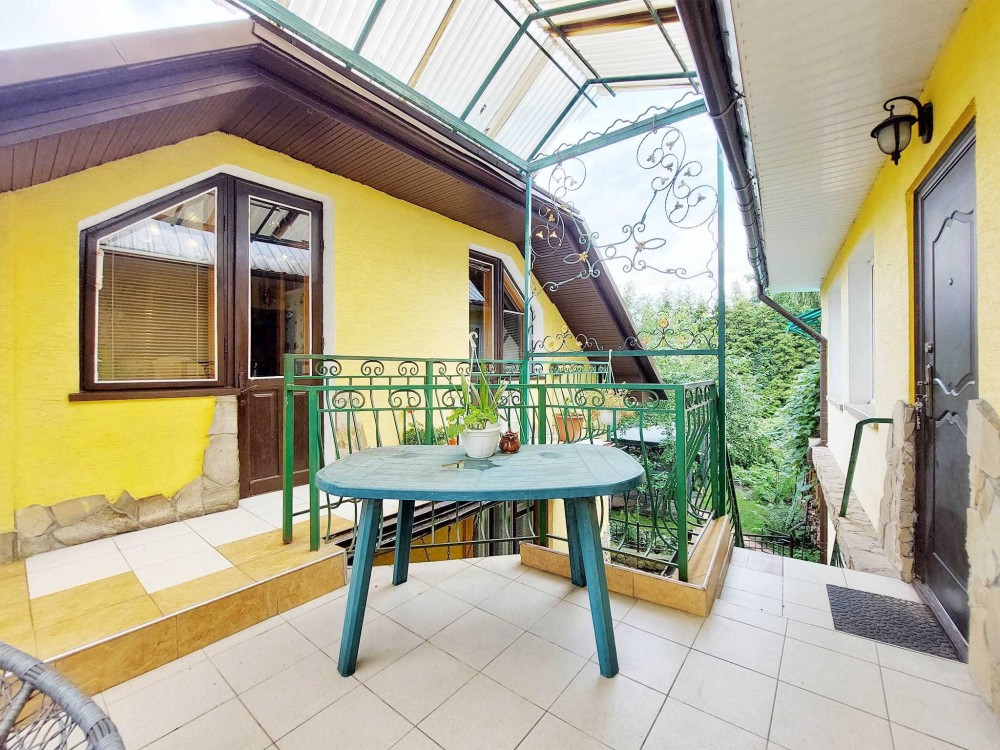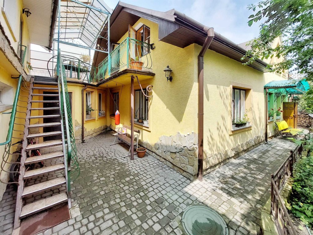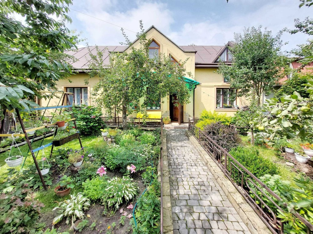 Продам будинок якій має 2 поверхи, гараж. Є прибудинкова територія з садочком та альтанкою. В будинку 6 кімнат, три санвузли, 3 кухні, велика тераса. Можливо проживання 2х сімей. На першому поверсі простора вітальня 29м, з каміном, яка об'єднана з вмонтованою кухнею., санвузол, дві кімнати. На 2му поверсі 2 кімнати, санвузол, кухня та кладова. Є вихід на балкон з зоною відпочинку. Окремий вхід має кімната з терасою, кухнею та санвузлом(фактично ізольована 1 кімнатна квартира). В будинку є сауна. Будинок збудован з червоної цегли. Опалення є газовий котел, також є можливість опалювати дровами.