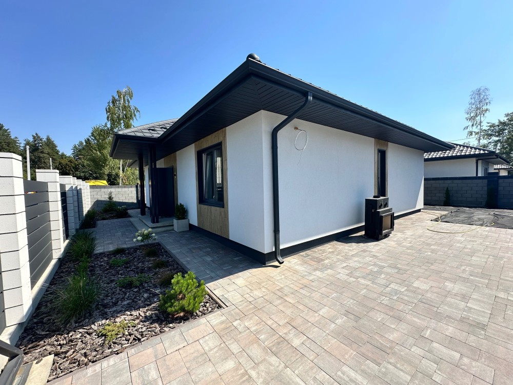 Продається готовий будинок площею 94 м² на ділянці 4,5 сотки з сучасним ремонтом та продуманим плануванням. Три окремі кімнати, простора кухня-вітальня з виходом у двір, душова кімната та мансарда (як холодне горище).