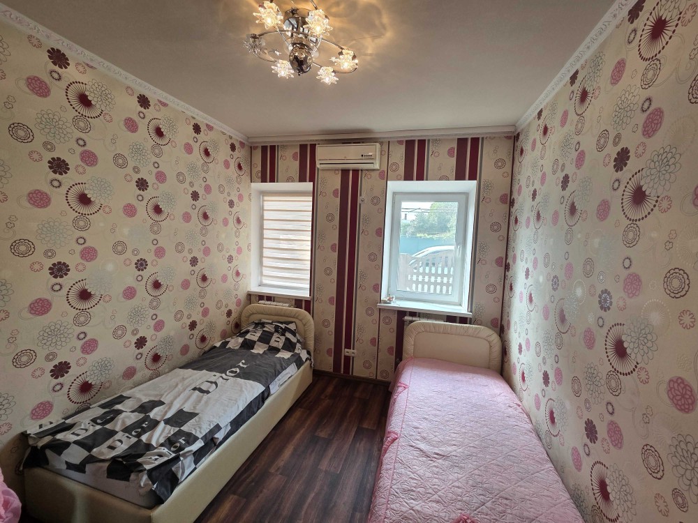 ( 11,7кв и 9,4кв ). кухня прихожая и ванная комната в кафеле. м/п окна новая электропроводка. установлен счетчик на свет день/ночь. установлен новый бойлер-80л . установлено видеонаблюдение на доме. два кондиционера -на кухне и в зале. крыша металлочерепица.