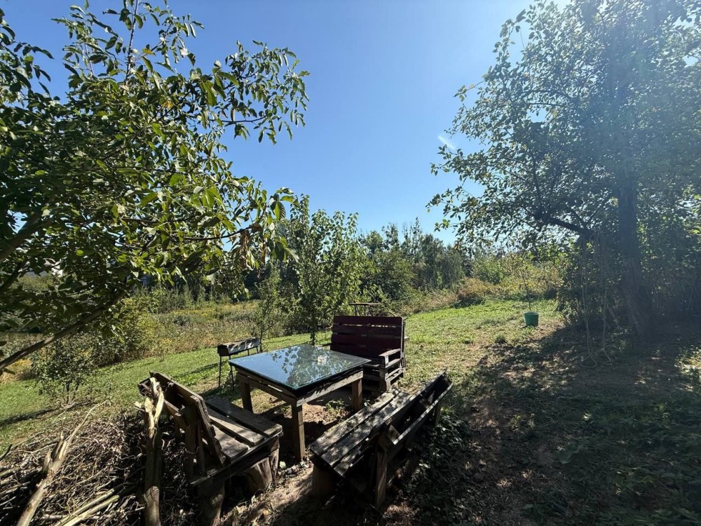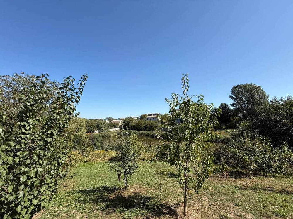 Земельна ділянка 5 соток виходить прямо на ставок із рибою — можна рибалити чи відпочивати біля води.