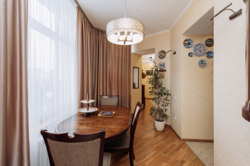 Продам простору дворівневу квартиру в центральній частині міста – вул. Петропавлівська. Якісний цегляний будинок, закрита територія двору, є гаражі для мешканців будинку в дворі (можна купити). Загальна площа - 141,5 м².