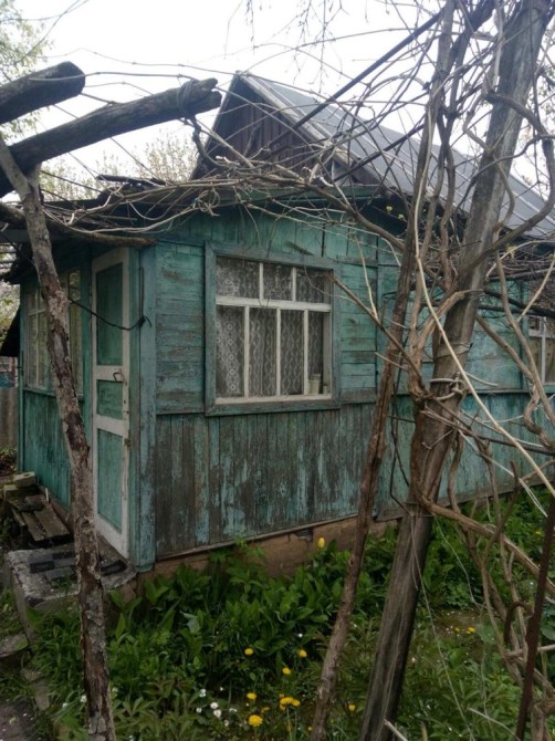 Домик деревянный. Веранда, комната, есть отдельное хорошое помещение для дачного инвентаря( пристройка)