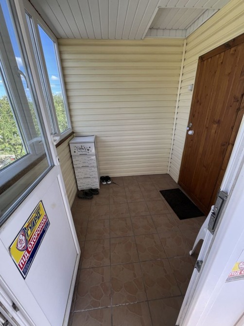 - 1 этаж: большая веранда-столовая 18м², кухня, санузел, большая кладовка. В туалете полы с подогревом, бойлер с сухим теном, стиральная машинка, холодильник, микроволновка, кондиционеры. Вход на второй этаж с улицы.