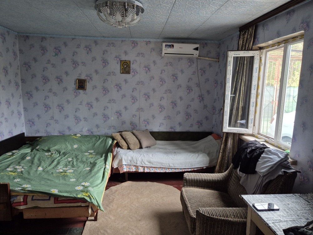 1/2 будинку-1кімната,комора,кухня,пічне опалення,кондиционер, свердловина,залишається: частково меблі,кухня,пральна машина,холодильник,посуд.
