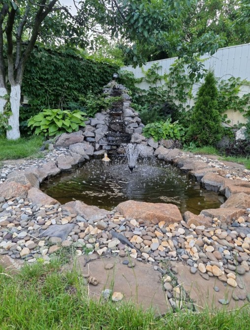 Водопад с озером и рыбками ;