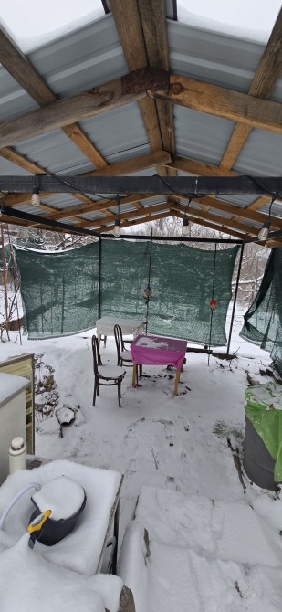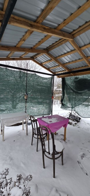 Туалет, сарая с новой перекрытой крышей, подсобное помешение в него можно поставить кровать и новечать летом, больщой навес для летних посиделок.