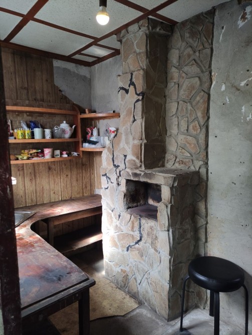 Кам'яний камін, який створює затишну атмосферу та ідеально підходить для вечірнього відпочинку на дачі.