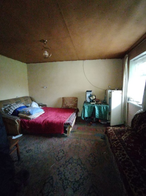 Дом в с.Заболотье, Шосткинский район. Общий вид с огорода (фото 1) Слева деревянный сарай ~ 24м2 (фото 2) Возле сарая погреб (фото 3) Летняя кухня ~ 10м2 (фото 4) Возле летней кухни есть скважина под глубинный насос (фото 5) Жилой дом ~ 50м2 (фото 6) Прихожая (фото 7-8) Коридор (фото 9) По коридора прямо сразу веранда (фото 10-11) Налево по коридору проходная комната с половиной грубки, двумя столами и счетчиком электроэнергии (фото 12-15), дальше комната со второй половиной грубки (фото 16-19) Направо по коридору кухня с печкой и лежаком (фото 20) Пол везде хороший. Долгов нет. Есть сад и плодовые деревья. Состояние все на фото.