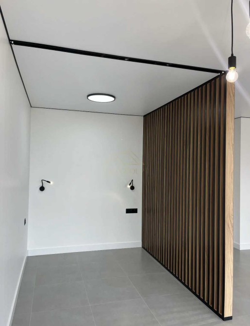 Квартира виконана у форматі студії з виділеною спальневою зоною — продумане планування для максимального комфорту та простору.