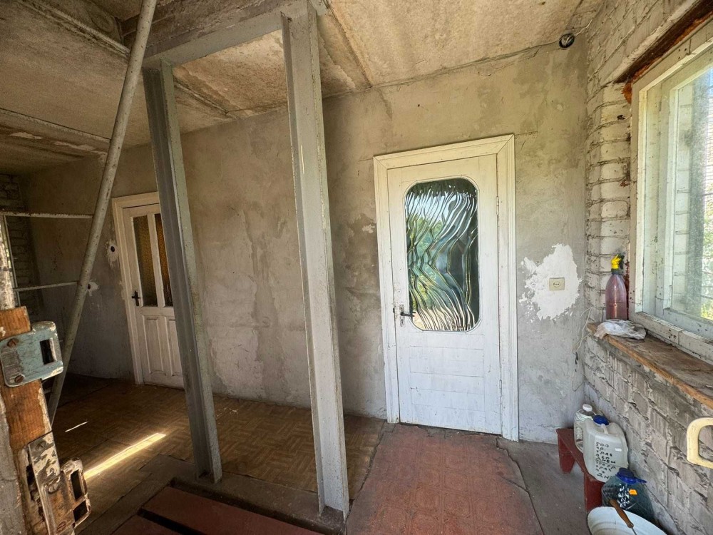 Крепкий, каменый, теплый и сухой дом, неподалёку от реки Ингул. Собственный приватизированый участок земли почти 5 соток. на участке строение под мастерскую или летнюю кухню с газом и электричеством. Возможно на этом месте построить второй домик. Сам дом имеет 2 одинаковые просторные спальни и обьединяющая их гостинная. Просторная прихожая свободной планировки, раздельный санузел с окошками для естественного освещения. Большая кухня выполнена в дизайнерском решении: высокий потолок в виде грани конуса придаёт этому месту особую силу притягивать всю семью к столу для завтрака, обеда, ужина или просто чаепития. Из кухни имеется выход на терассу, где круглый год вы сможете лакомится шашлычком, например) В доме сделана новая крыша, перестенки, залит и частично утеплён пол, вставлены м/ п окна и двери. Водяные и канализационные трубы новые Дом после реконструкции преобразился. Но требуется завершить ремонт по вашему вкусу. Имеются стройматериалы. Возможен обмен на две двухкомнатные квартиры, 1+2 кк, или одну с доплатой.