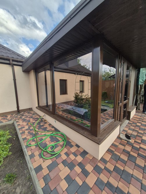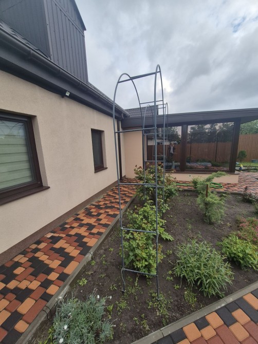 Уличное видеонаблюдение, периметр двора как и дом освещается датчиком движения и светодиодными лампочками. Двор выложен тротуарной плиткой (Старый город) и накрыт навесом с поликарбоната и с гарантией на 50лет.