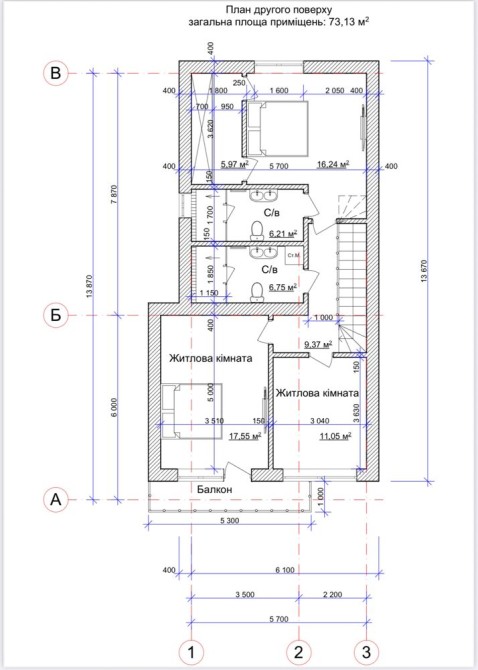 План другого поверху (73,13 м²):