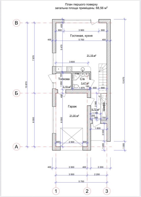 План першого поверху (68,56 м²):