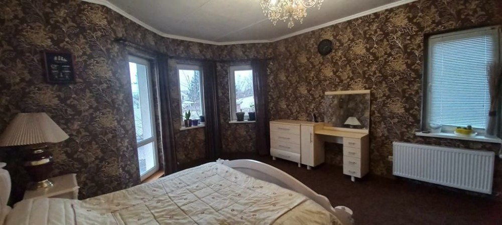 Продаётся Срочно,свой дом в Дарницком районе г Киев,4 км от метро Славутич,по ул.Центральная,на Фасадном приватизированным участке 4.5 сот.с кадастровым номером. Дом новый ,2019 года постройки,2 этажа ,с отличным, ремонтом.общей площадью 180 кв.м. 7 комнат, три санузла, тёплый пол,и полностью с мебелью.Разделён на три отдельные квартиры со всеми удобствами- одна часть 110 кв.м.+две квартиры по 35 кв.м. Все квартиры с отдельными входами.При желании всё можно об'единить в единое помещение.Дом построен из газоблока толщиной 300мм,и утеплен пенопластом 100мм.Фундамент ленточный,глубина в земле 90 см ширина 50-60см.высота над землёй 65-70 см.На фундаменте монолитная плита толщиной 15-20см. Заливка фундамента, арматура и прочее имеется фото и видео.Построен 3 этаж под мансарду полноценных 50 кв.м пока без ремонта с проведённой водой,канализацией,электричеством.Крыша трёхскатная,металлочерепица.Высота потолков 1 этаж 3м20см.второй этаж 2м70см.Мансардная часть высота по центру 3м40см,по краям 1м20см.Встроены проёмы для окон.В доме всего 21 высоких окон,что делает комнаты очень светлыми.Два септика с переливом+дренажная система. Электроэнергия три фазы 20 квт. Общий счетчик плюс отдельные счётчики на каждую квартиру. Скважины две- глубиной 73м и 12 м. Подвал 7 кв.м сухой,с бетонным перекрытием,используется для укрытия.Отопление электрокотёл.Газ по улице.Остановка автобусов в 2х минутах от дома, до метро 10 мин на автобусе,рядом маркеты,аптека,сто,новая почта.в пеший доступности пляжи на озёрах и Днепре. ОТЛИЧЫЙ вариант для жильё,под аренду,хостел,офис и прочий бизнес.Цена снижена за СРОЧНОСТЬ! Продаётся БЕЗ посредников.