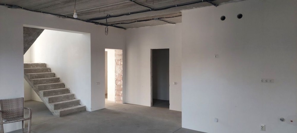 Дом 140м,с.Фонтанка,внутри сделано: комуникации сантехники,отопление теплый пол,электрика,пол полусухая стяжка,стены гипсовая штукатурка под обои.Дом под чистовую отделку