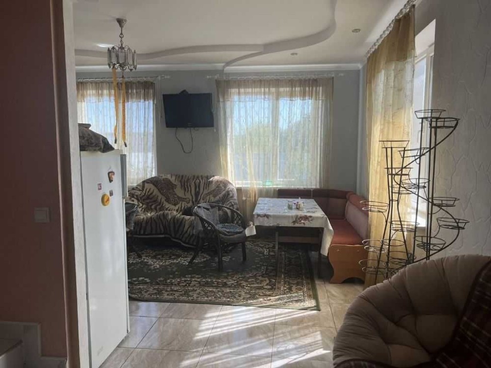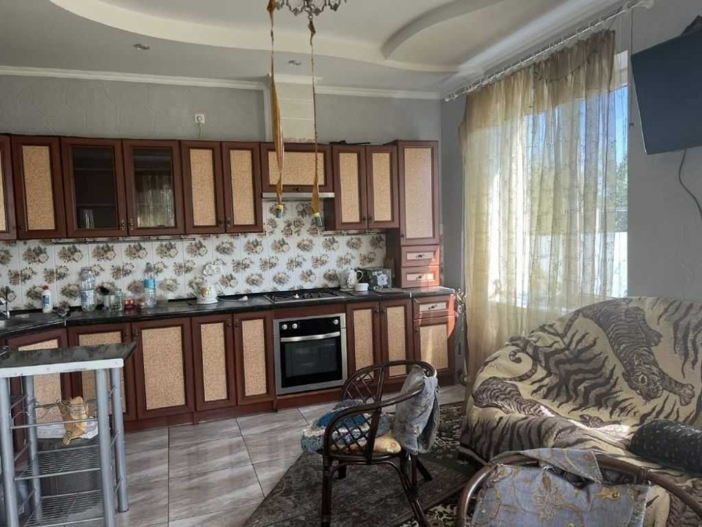 Продам новый современный дом-таунхаус. Два этажа. На первом этаже: комната, кухня-столовая, санузел. На втором этаже две спальни и санузел. Хороший ремонт. Мебель, бытовая техника, кондиционеры. Электро-отопление. Двор вымощен тротуарной плиткой. Навес для машины. Участок пять соток огорожен забором.