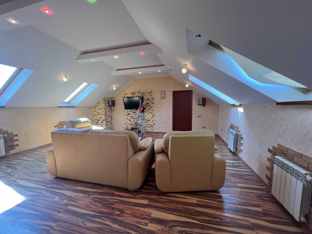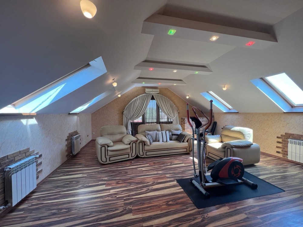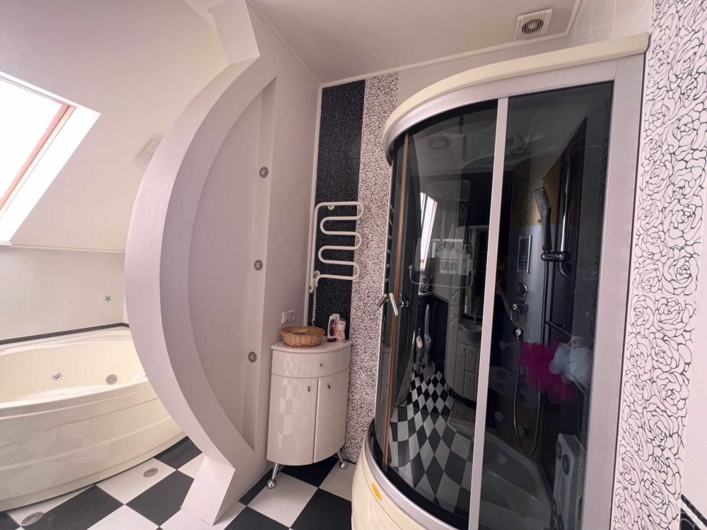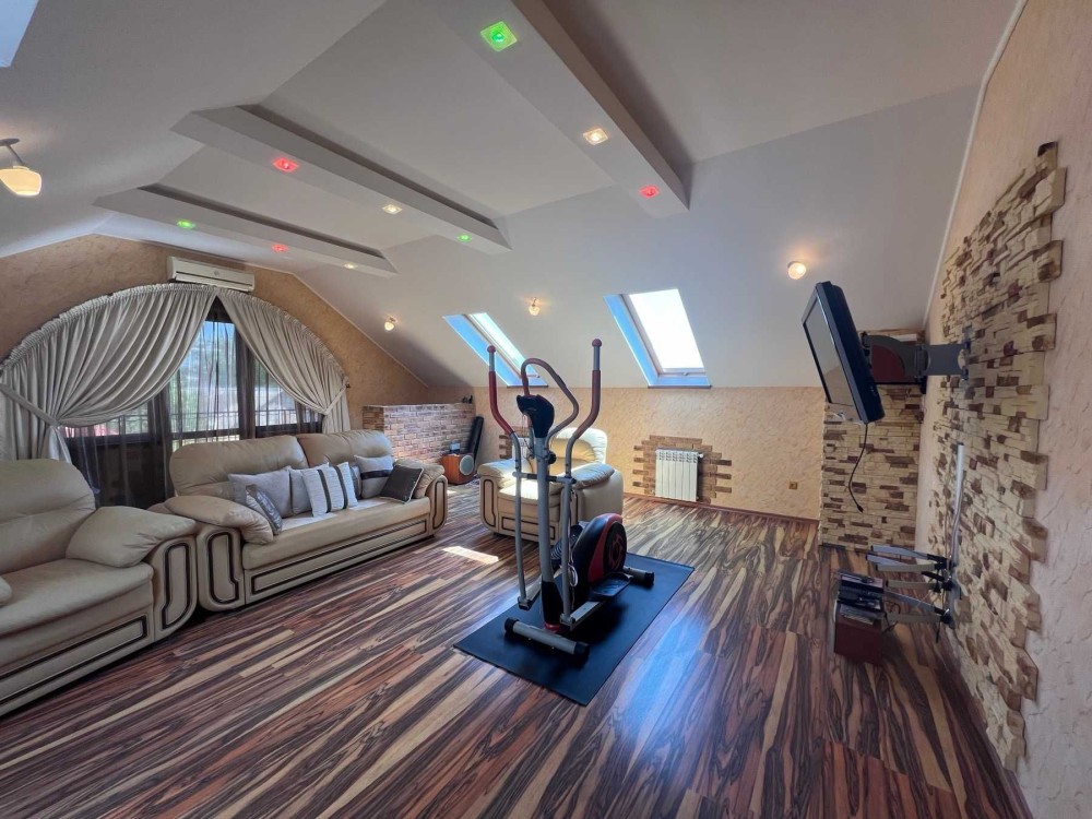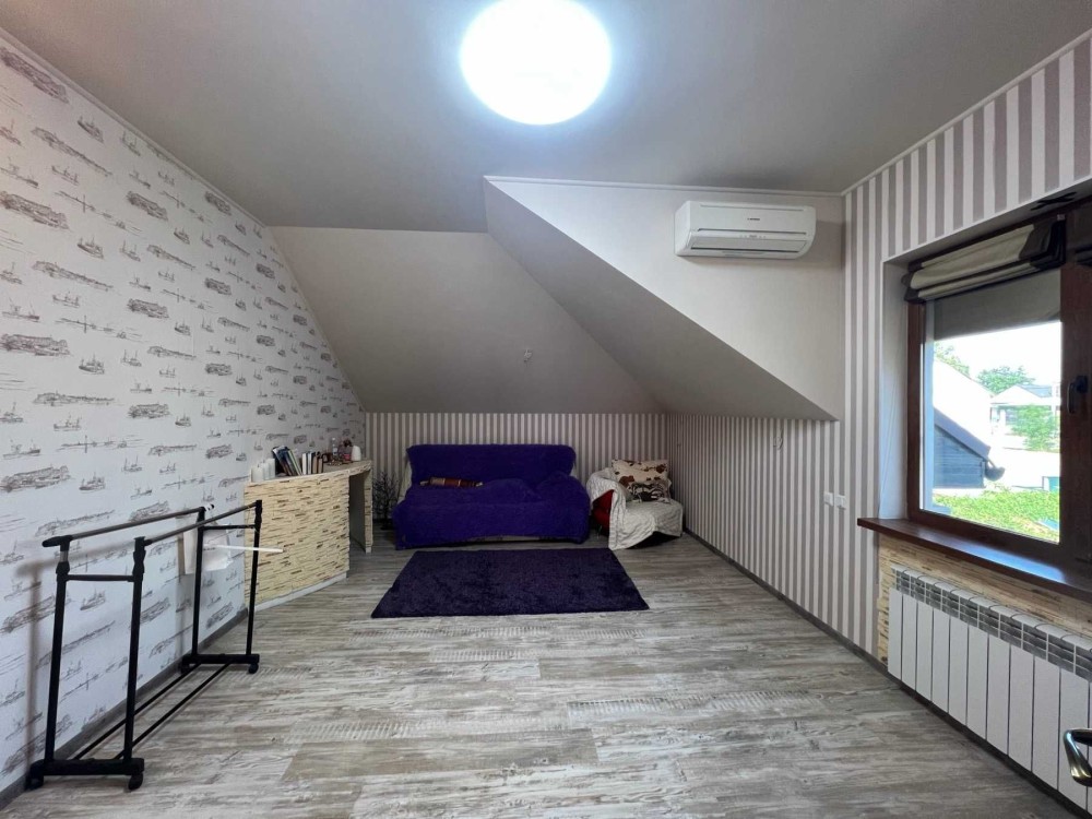 Дом в с. Красноселка. 2 этажа + мансарда с зимним садом и спортивным залом, 12 соток земли, ландшафтный дизайн. Все коммуникации в доме: свет, газ, вода, отопление ОАГВ. На 1-м этаже кухня-гостиная 57.2 кв.м., спальня, с/у, большой холл. на 2-м этаже гостиная, 3 спальни, 2 с/у -один с ванной, второй с душевой. Гидрофор на 1 тонну воды, гараж, есть подвал. Есть место под гостевой домик. Дом расположен на центральной улице, где проходит маршрутка. От поселка Котовского 5 километров. Два ставка поблизости, рыбалка, детская площадка, школа, супермаркет в пешей доступности, мини-рынок, парк.