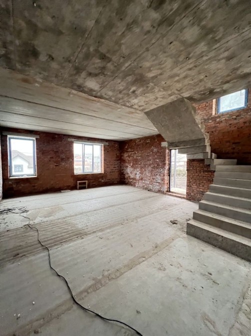 Цокольний поверх побудований з бетоних блоків, зроблена армована стяжка, гідроізоляція, площа цоколю 6х11,5м (можна використовувати не лише як гараж, а і як підсобні приміщення). Встановлені автоматичні ворота.