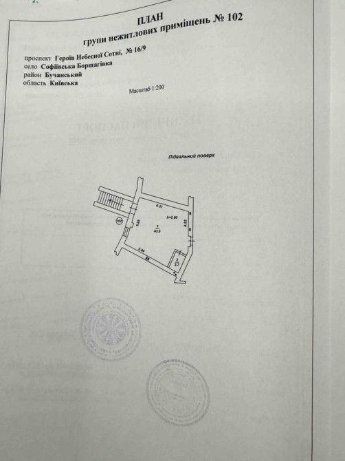 Загальна площа одного приміщення 43.6 кв.м. Площа другого приміщення 56.6 кв.м. Дзвоніть!