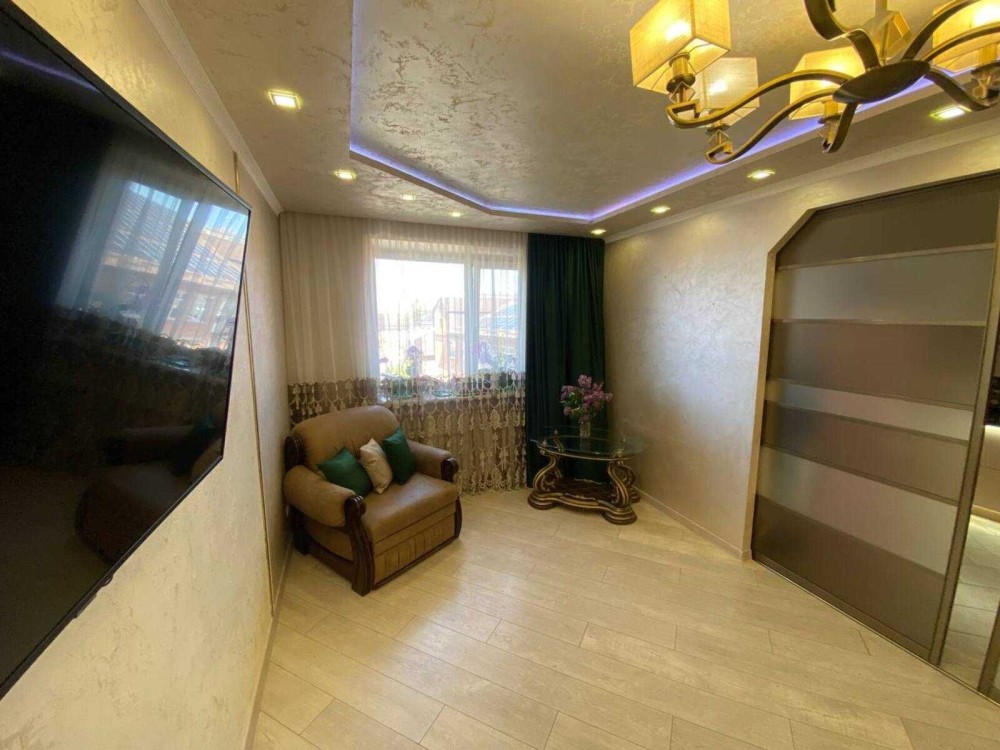 Продаж двокімнатної квартири з добротним, дизейнерським ремонтом, у якої кімнати виходять на дві сторони будинку. В квартирі є сигналізація, відеонагляд та відеодомофон. Вбудована зонована аудіосистема. Усі стіни оформлені різними видами декоративноЇ шпаклівки, навіть на стелі. А також тепла підлога яка перемикається на кожну зону окремо, стільниці з натурального каменю (кварцид), система меблевих доводчиків БЛЮМ і кухня вітальня, яка розмежовується шосейними скляними дверима. А як бонус плюс йде ще кладова між поверхами 4.3 кв. з ремонтом та стелажами. Ну а за більш детальною інформацією звертайтесь.