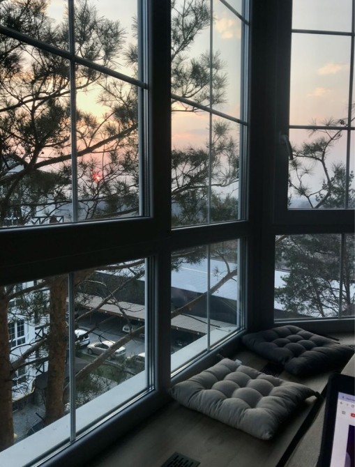 -просторова кухня-вітальня з шикарним видом із вікна