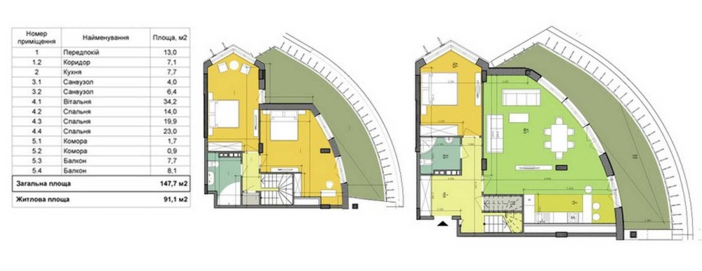 квартира розташована на 8 та 9 поверхах.