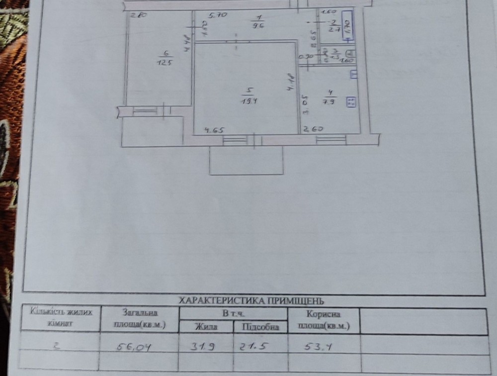 • Загальна площа 56 м2