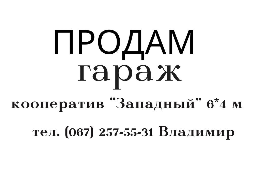 Гараж на ж/м Западный. Подъезд в кооператив заасфальтирован, территория охраняемая с освещением. Размер 6*4 м. Гараж сухой, крыша не течет. Приватизирован. Без Долгов.