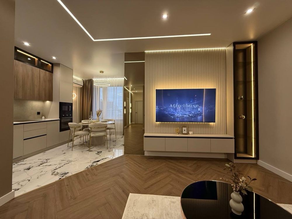 Продам гарну 3 кімнатну квартиру , в сучасному та новому ЖК Атмосфера, загальною площею - 78 метрів. Виконаний дизайнерський ремонт , який продуманий до дрібниць, дуже зручно що ж 2 гардероби , 2 балкона і що важливо - квартира виходить на обидві сторони будинку- це рідкість і великий плюс. Квартира робилась якісно і для себе. Варіант ексклюзивний, таких квартир немає. В будинку на останньому поверсі свій парк с зонами відпочинку. На першому поверсі -басейн і закритий двір з фонтаном. Хто цінує якість і хоче сучасну квартиру , чекаю на перегляд.