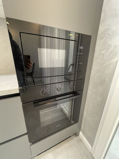 З техніки є холодильник, мікрохвильовка, духовка, варочна поверхня, витяжка, газовий котел.