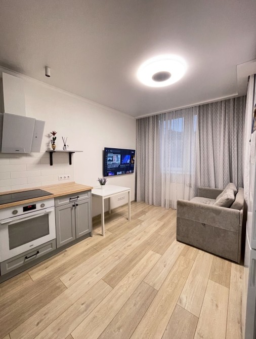 Встроенная мебель и техника в кухне, гостевая зона с раскладным диваном , полноценная спальня с местом для гардеробной, вместительный шкаф в прихожей.