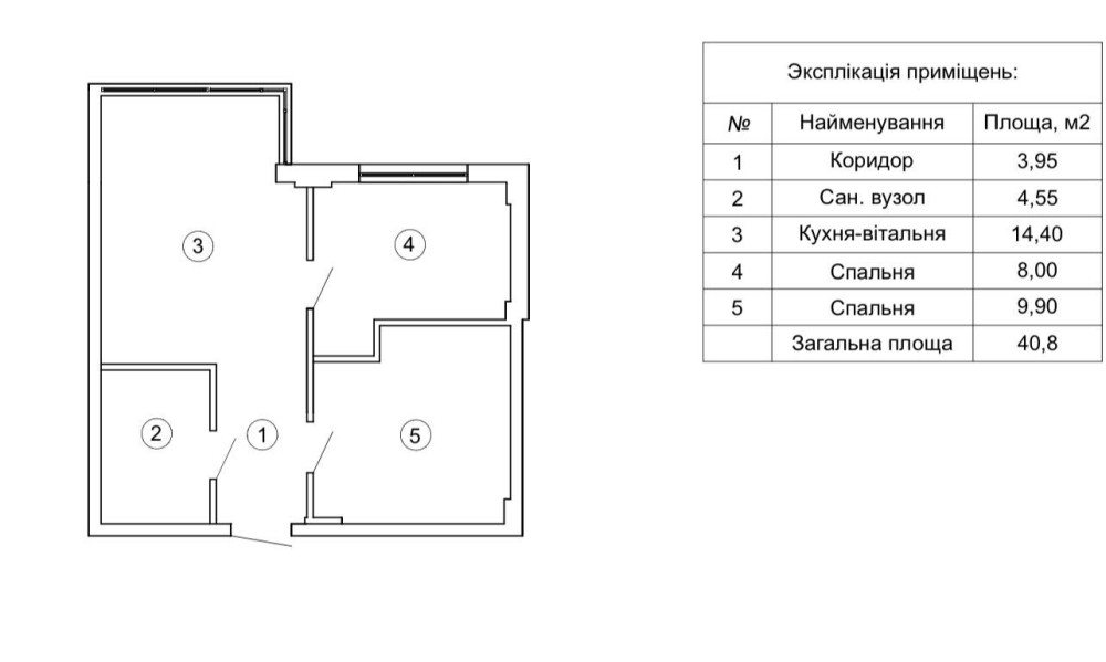 • Загальна площа 40 м2