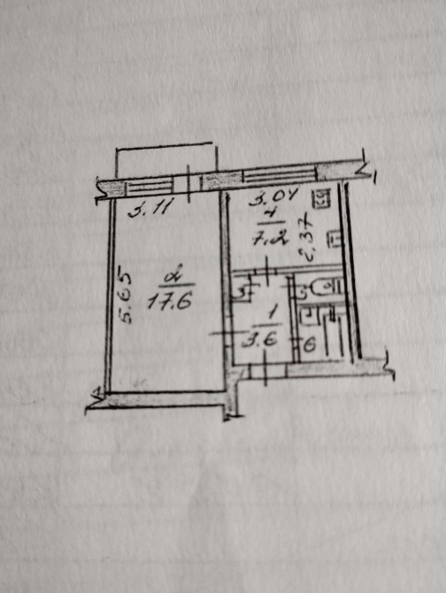 Квартира 33 кв.м кухня 7,2м, Комната 17,6м, находится на 6 этаже. Балкон застеклен.