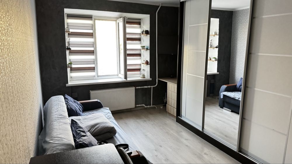 Підлога ламінат, новий великий шафа-купе, двері броньовані, замінена батарея, своя міні кухня. Можна заїхати і доволі комфортно жити, так як все необхідне є, робилось для себе. Є загальний душ - де теж зроблений недавно ремонт, замінена вся плитка та двері.
