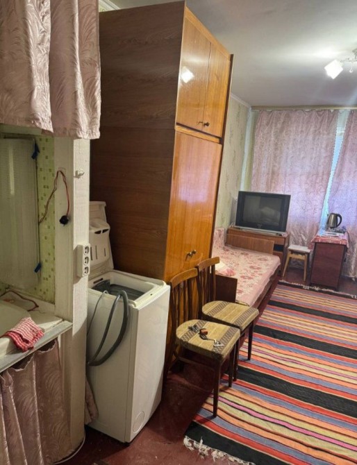 Кімната -17 м.В кімнату заведена вода,підключена пральна машина,косметичний ремонт.Все що в кімнаті є,залишається.Мало проживаючих.Кухня та санвузол на 5 кімнат.Блочна система.Перегляди в зручний для вас час,по домовленості.