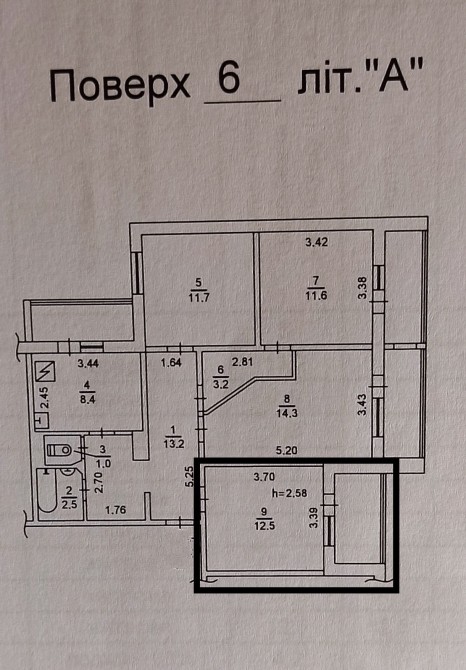 Неопалювальна площа - 4 кв.м це балкон, кімната виділена чорною рамкою. Поверх 6 з 16