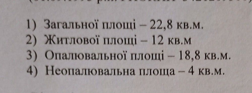 Загальної площі – 22,8 кв.м.