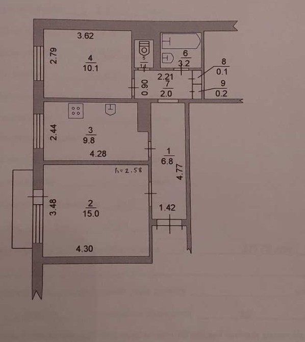 • Площа кухні 9.8 м2
