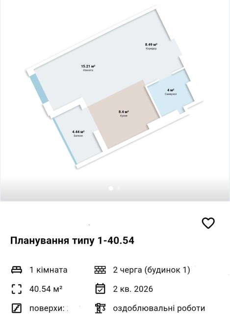 • Загальна площа 40.54 м2