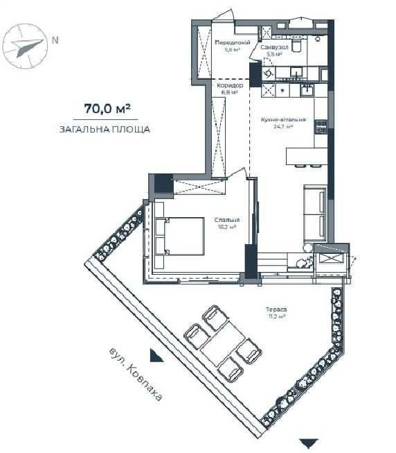 - Загальна площа: 70 м²