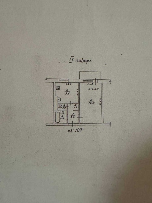 Житлова-17.5 кв.м. Кухня-8.6 кв.м.