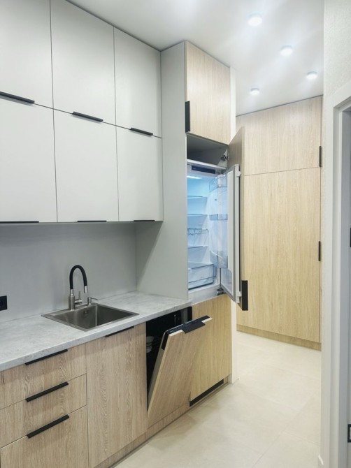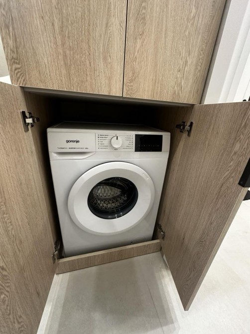Встроенная техника, бойлер, стиральная машина, посудомойка, кондиционер, телевизор . Техника Samsung и Gorenje. Много мест хранения . 3,5 метров шкаф в прихожей , с секциями для хранения одежды и обуви и хоз. инвентаря , большой шкаф в сан узле и спальне .